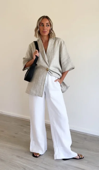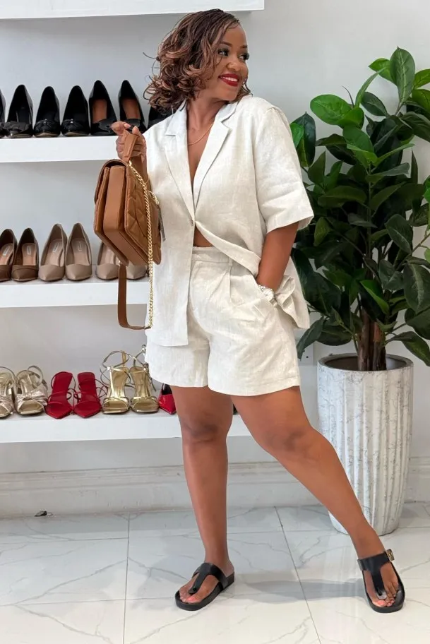 This casual cotton-linen set combines comfort and style for the modern woman. Featuring a loose fit with a V-neck, single-button closure shirt, and solid-colored shorts with pockets, it offers ease of movement and practicality. Crafted from a breathable blend of cotton and linen with slight stretch, it ensures comfort during spring and summer. The shorts have a zipper fly and a regular fit, while the shirt’s half sleeves and above-knee length create a relaxed yet polished look.