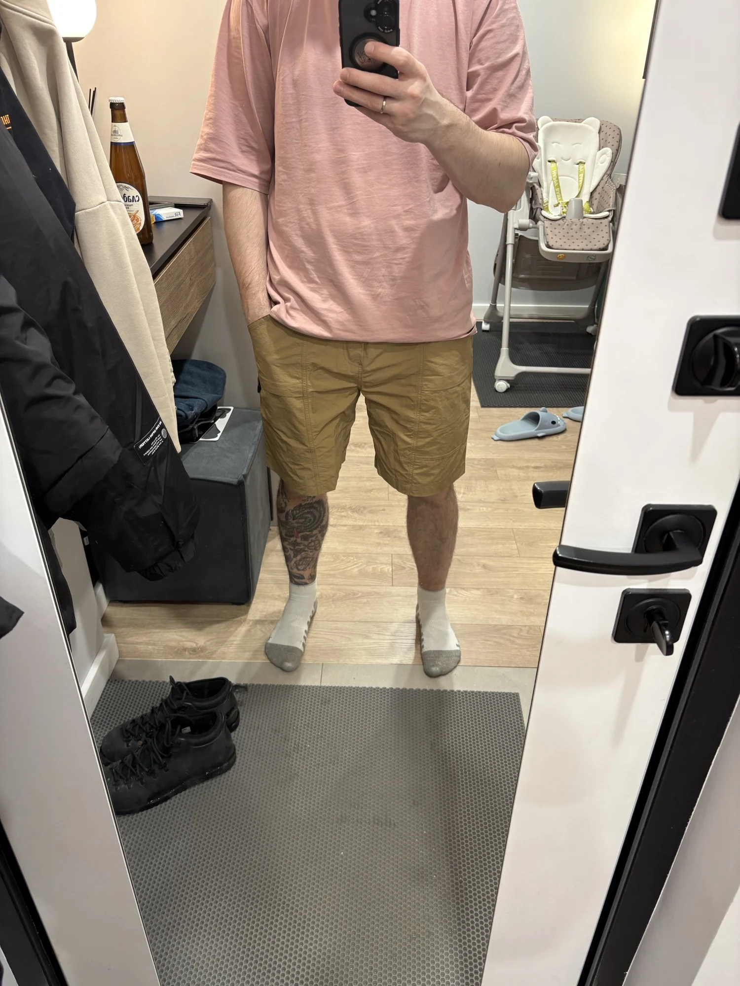 excellent shorts, reppстоп nylon, big pockets. In general, they are cayphobic, I think there are a couple of shortcomings, the classic belt cannot be stuck, narrow harnesses, no width. I won’t take a star, the shorts are excellent. I took xl for size 50, it fit perfectly.