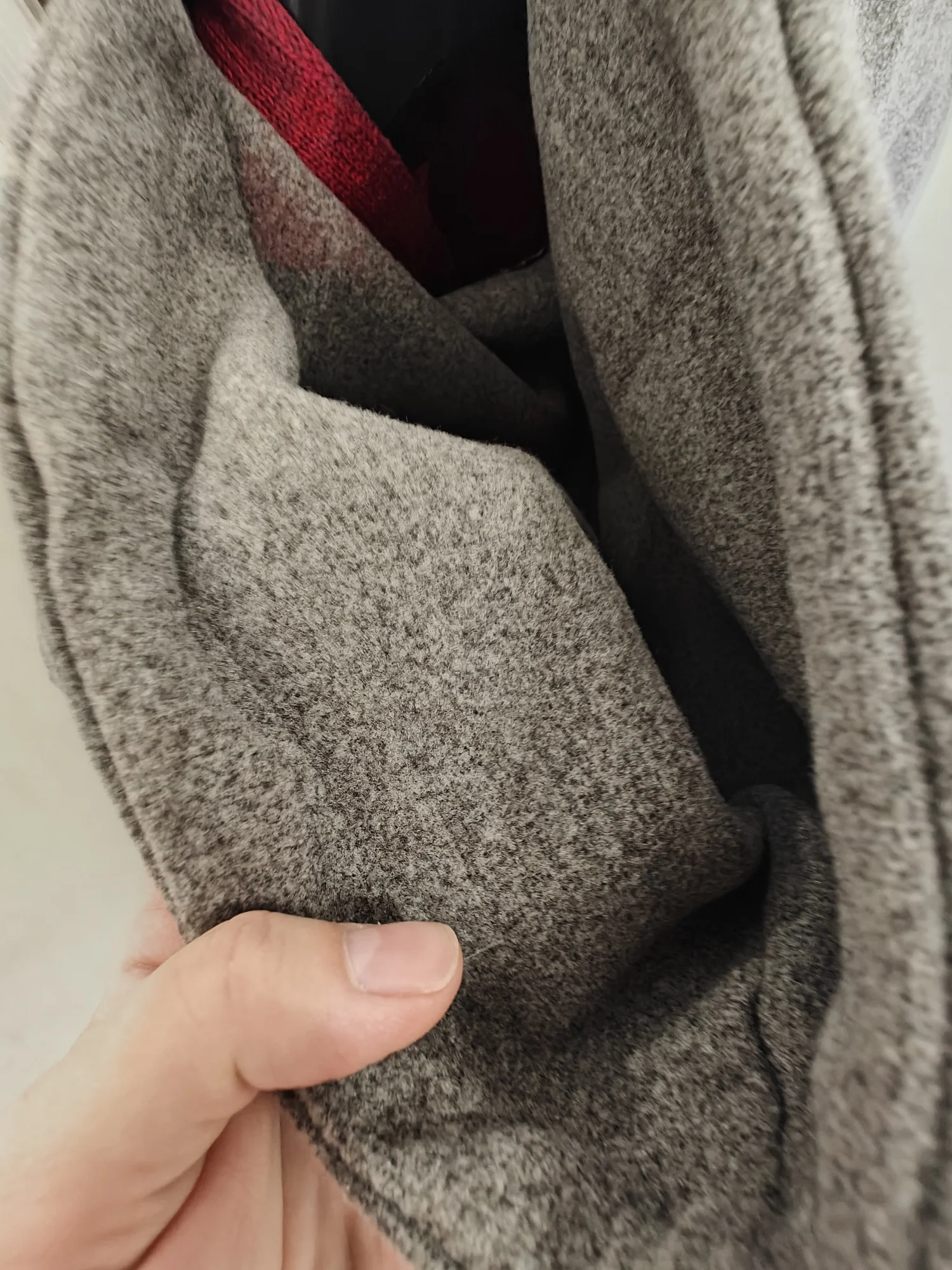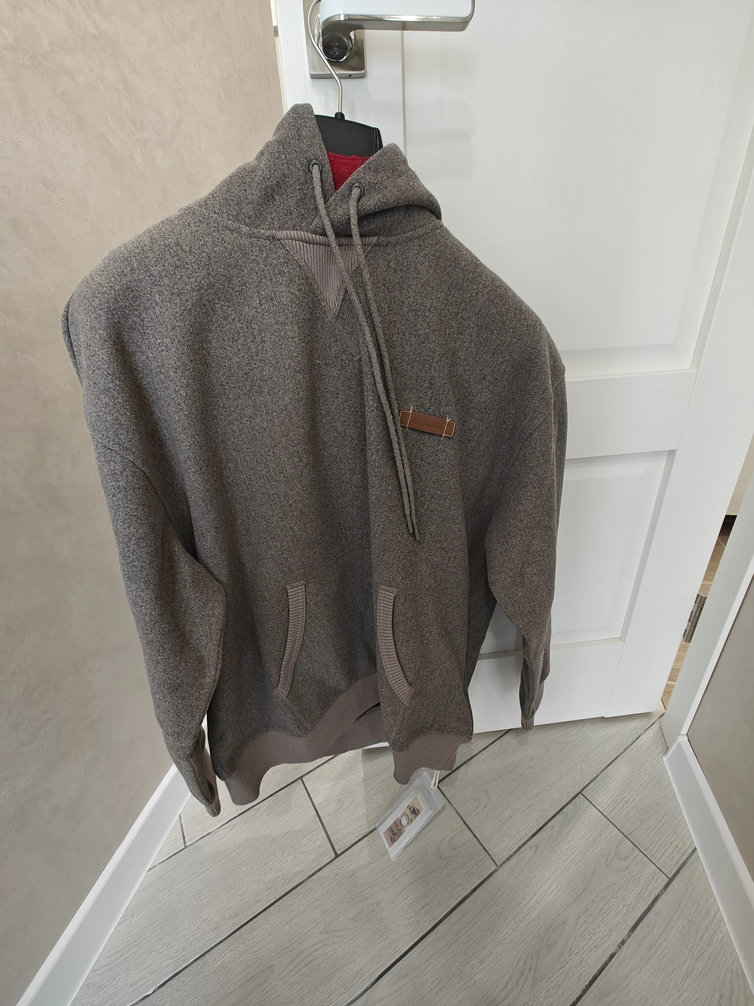 Looks great, but it's 100% synthetic. If it's hot outside, you sweat immediately; if it's cold, it doesn't warm you up. If the sweatshirt is damp inside, it's unpleasant to touch your skin, reminiscent of wet fur.